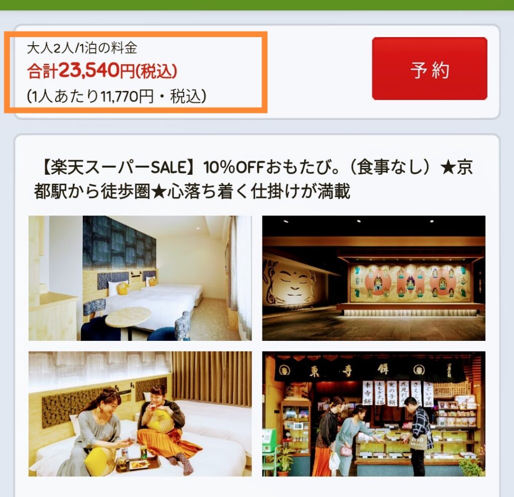 □楽天トラベル…23,540円(1人あたり11,770円)