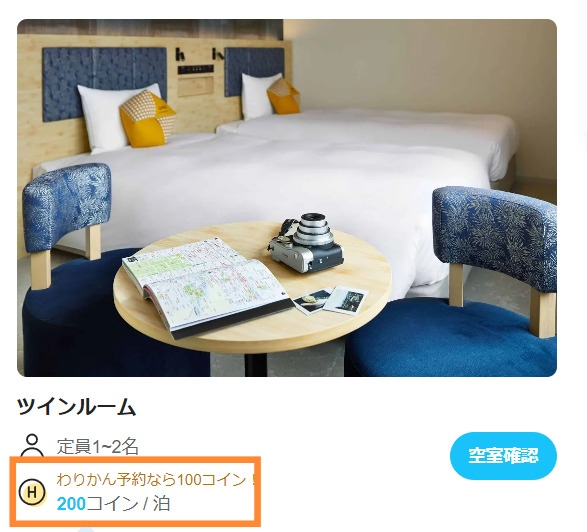登録するとコインがもらえるので、予約にはそのコインを使ってお得に宿泊できます。