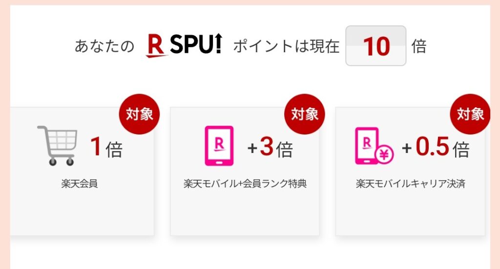 楽天市場ではSPUというポイントアップ特典があります。(スーパーポイントアッププログラム)