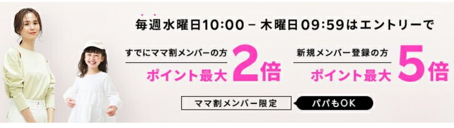 子育て中のママ・パパをサポートする無料プラグラム「楽天ママ割」に登録の方は、楽天ファッション利用で最大5倍のポイントがもらえます。