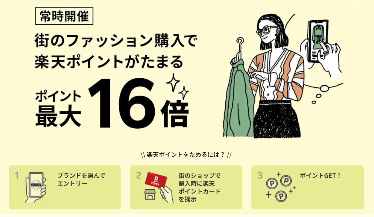 街のファッションブランド店舗でも楽天ポイントを貯めることができます。