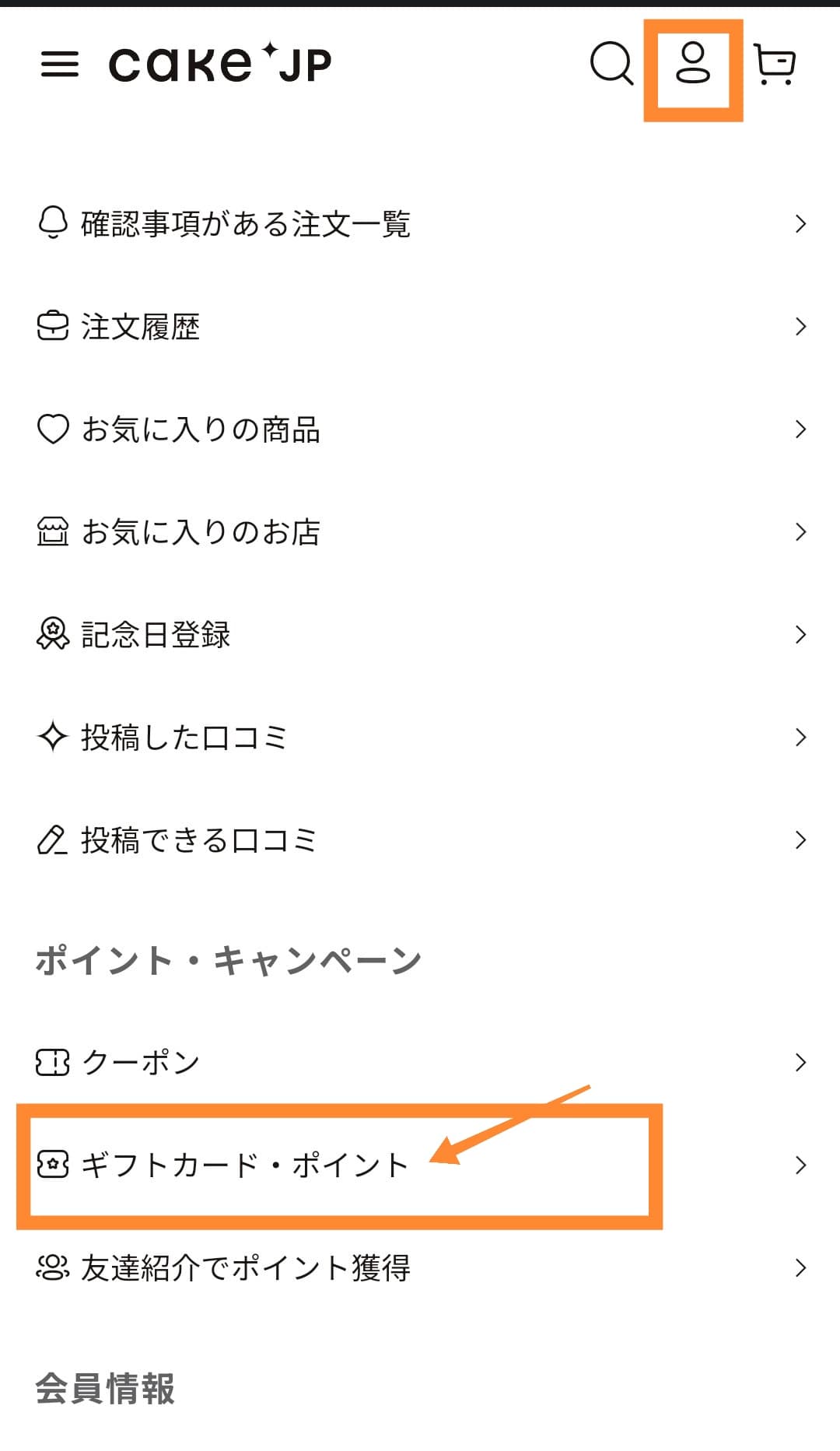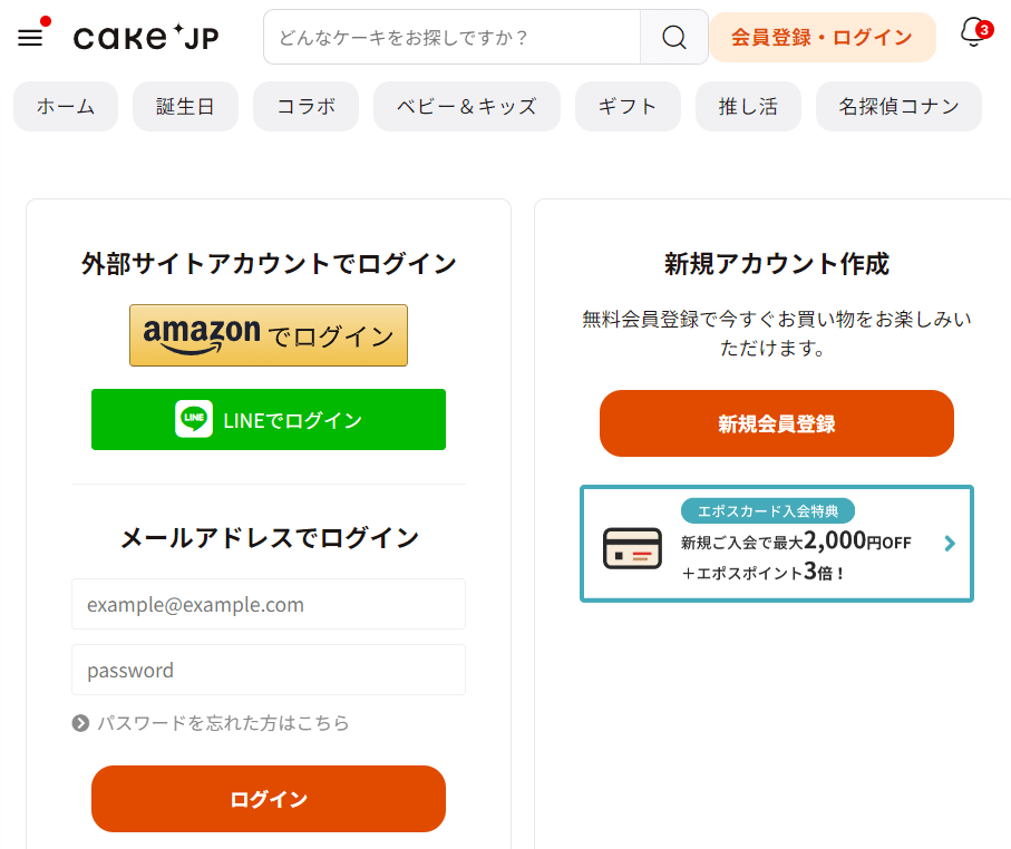 Cake.jpギフトカードを利用するには、Cake.jpに会員登録・ログインします。