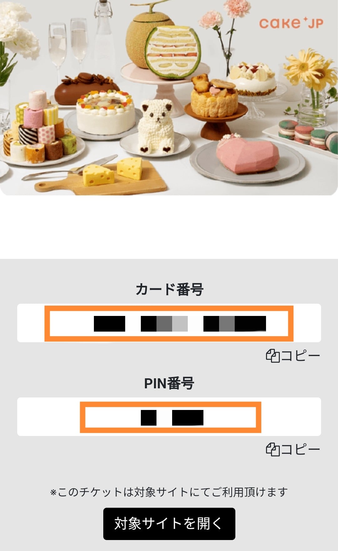 Cake.jpギフトカードは、公式サイトの他、ファミリーマート、ドン・キホーテで購入できます。