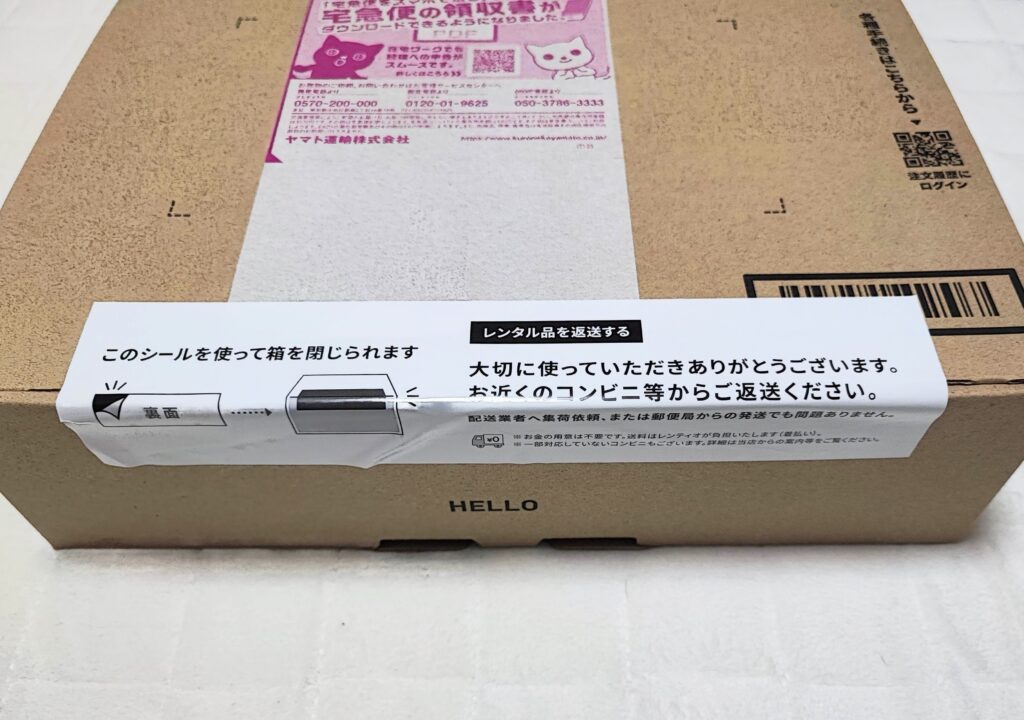 届いた箱にレンタル品を戻し、一緒に入っていた専用シールを貼りつけます。