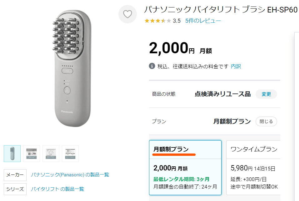 今回はキャンペーン割引中だった「パナソニック バイタリフトブラシ」をレンタルしてみました。