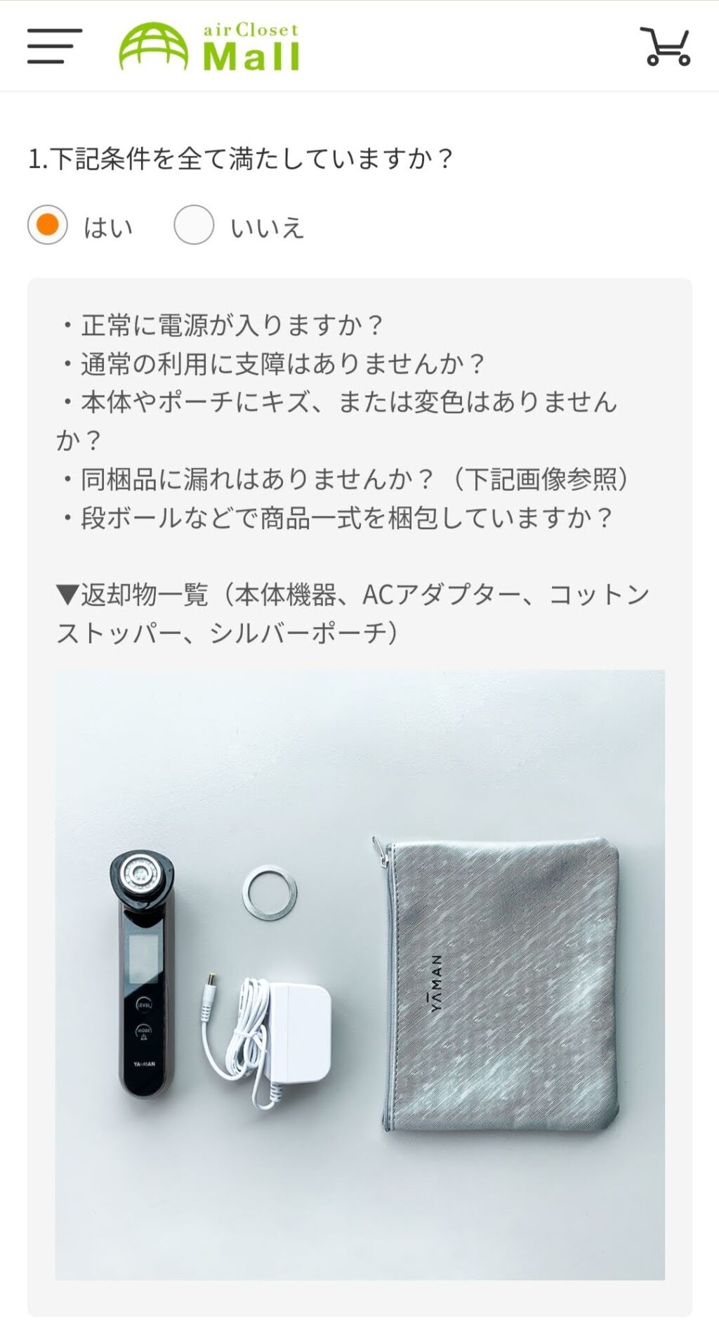 商品の状態や返却物一覧を確認して、返送手続きをします。