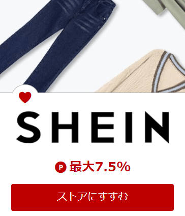 経由するだけでSHEINのポイントと2重取りできるのは嬉しいですね。