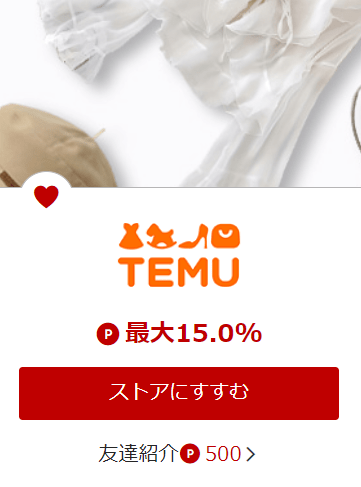 経由するだけでTemuポイントと2重取りできるのは嬉しいですね。