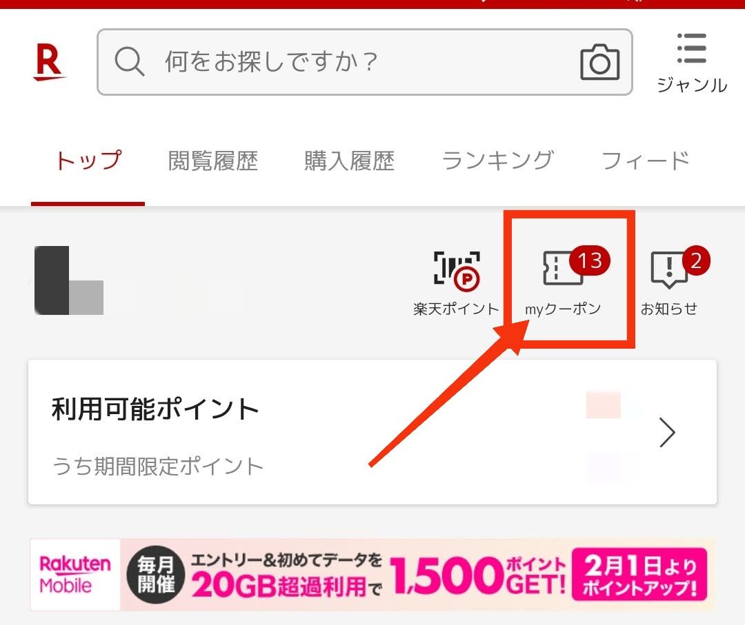 クーポン獲得後、他ページに離脱してクーポン場所が分からなくなったときは、Rakuten RaCouponから確認できます。