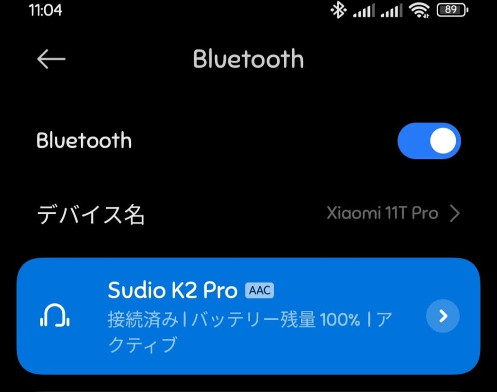 接続も簡単で、設定>Bluetoothから「Sudio K2 Pro」を選択します。