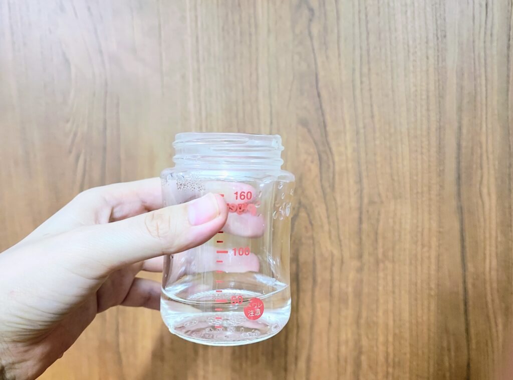 付属の水入れ計量カップがありますが、哺乳瓶を洗うついでに水を入れたほうがラクなのでカップは使っていません。