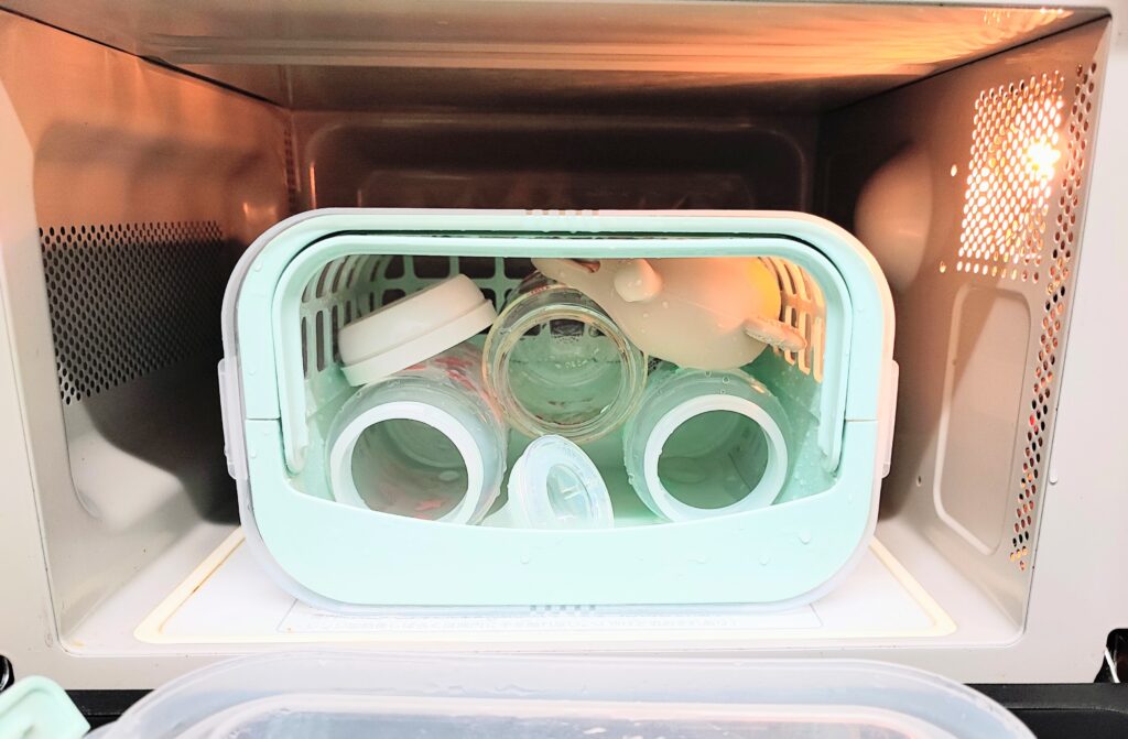 哺乳瓶やおしゃぶりなどをレンジ5分で消毒できます。