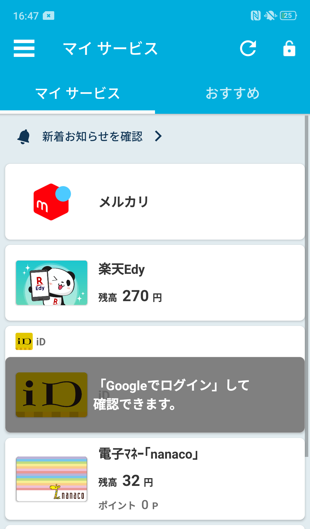 物理のポイントカードを捨てて、おサイフケータイに移動しました。