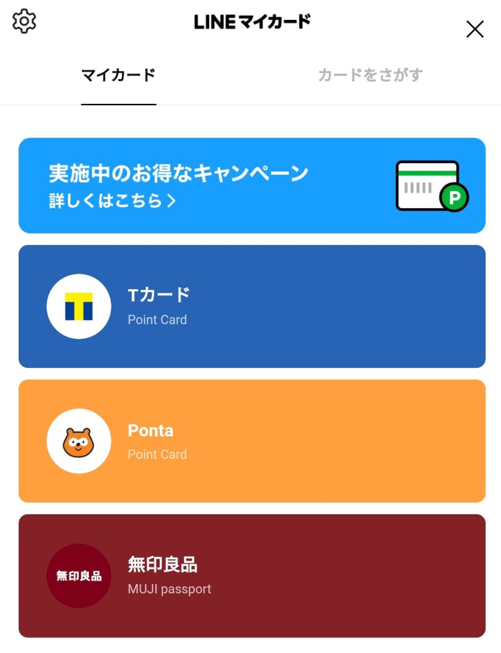 下記のカードに加え、スタバ・スシロー・ロフト・JINSなどはLINEアプリでまとめて管理ができます。