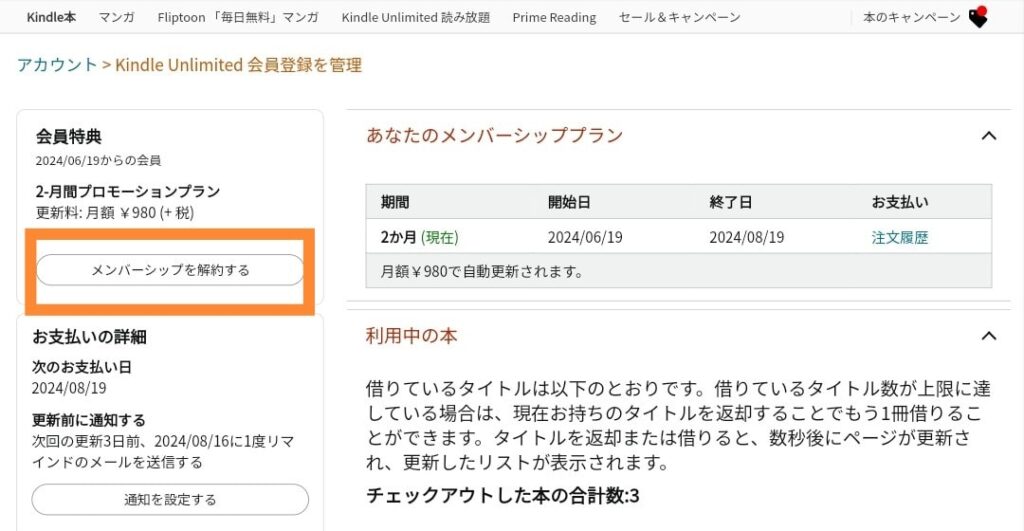 ③kindle Unlimitedメンバーシップを解約する