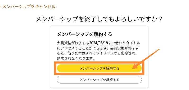 左側の「メンバーシップを解約する」をタップします。
