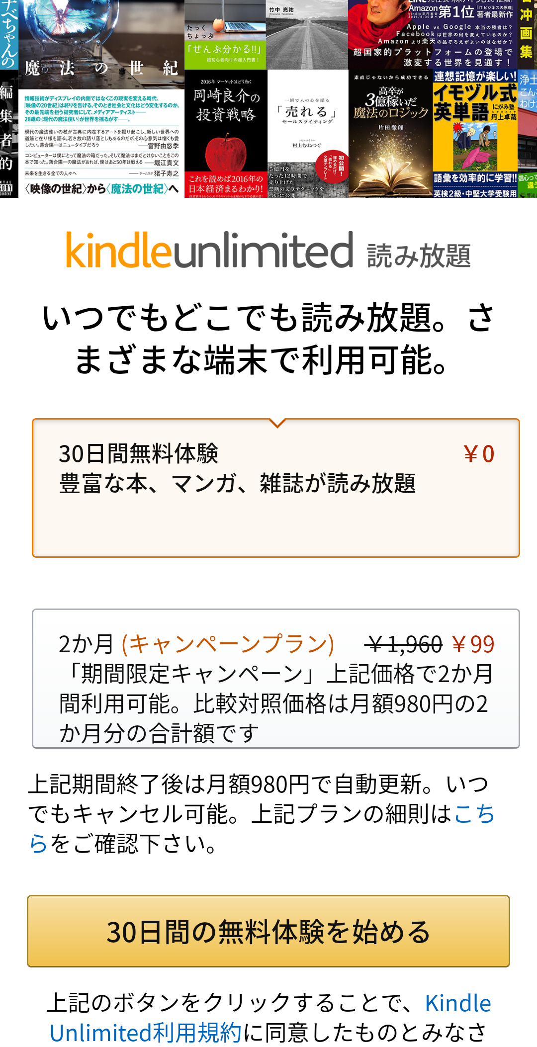 Kindle Unlimitedに初めて登録する方