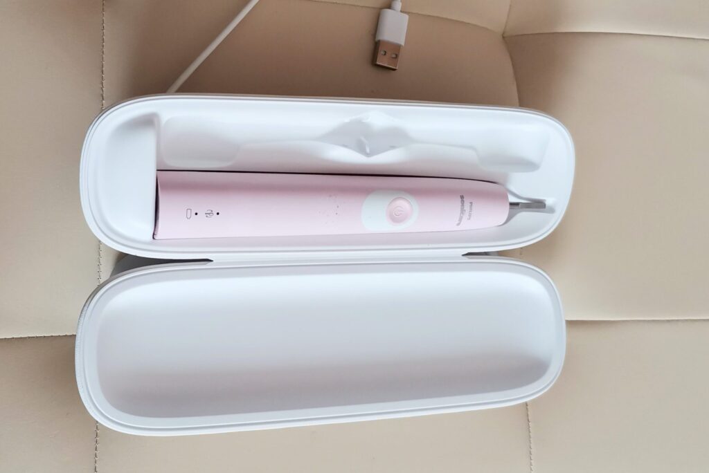 ソニッケアーのダイヤモンドクリーンは、コップに入れるだけで充電ができるので毎日使うのに便利ですね。