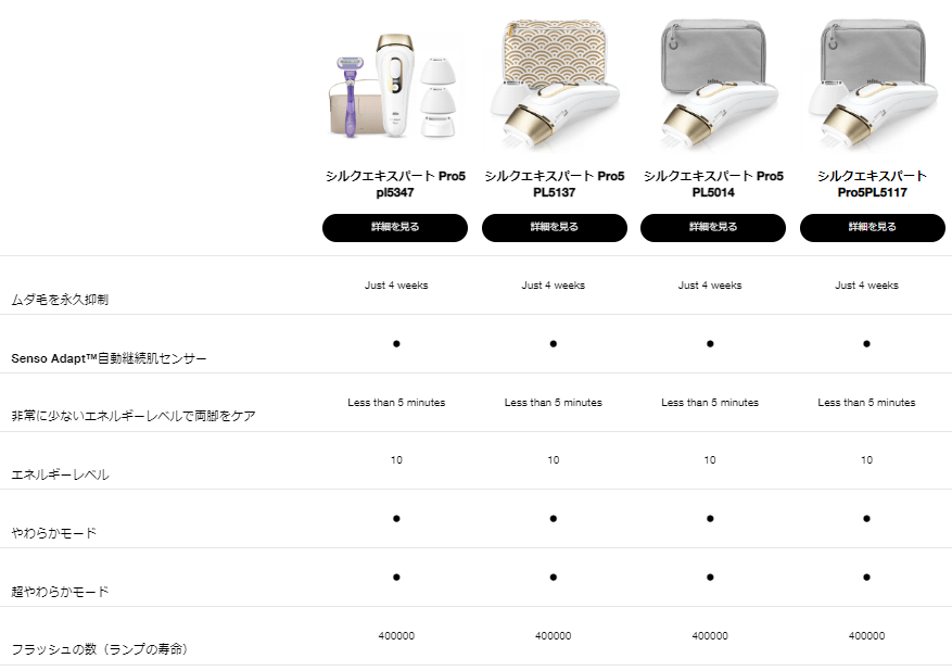 人気のシルクエキスパートPro5シリーズは、10以上の型番が販売されています。