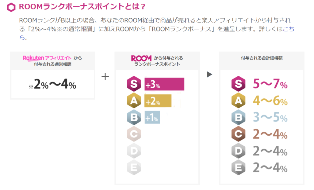 ROOMのランクをB以上にするとランクボーナスが発生します。