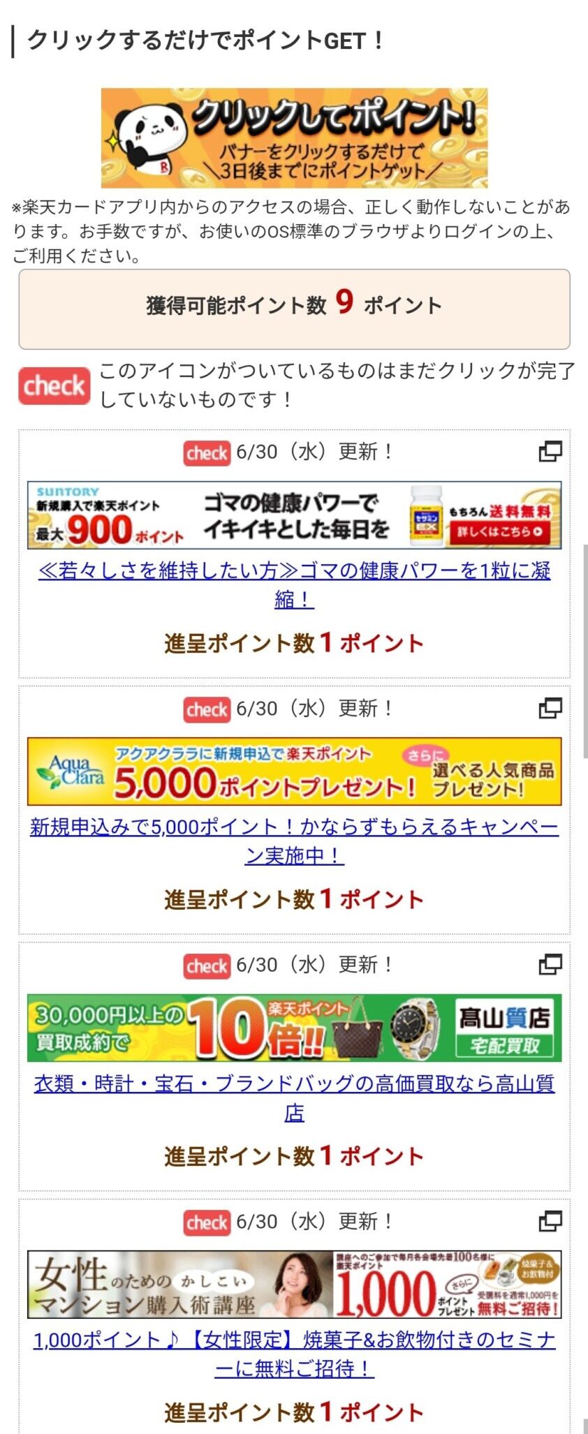 バナーが一覧で表示されるので、クリックするだけで簡単に楽天ポイントを貯めることができます。