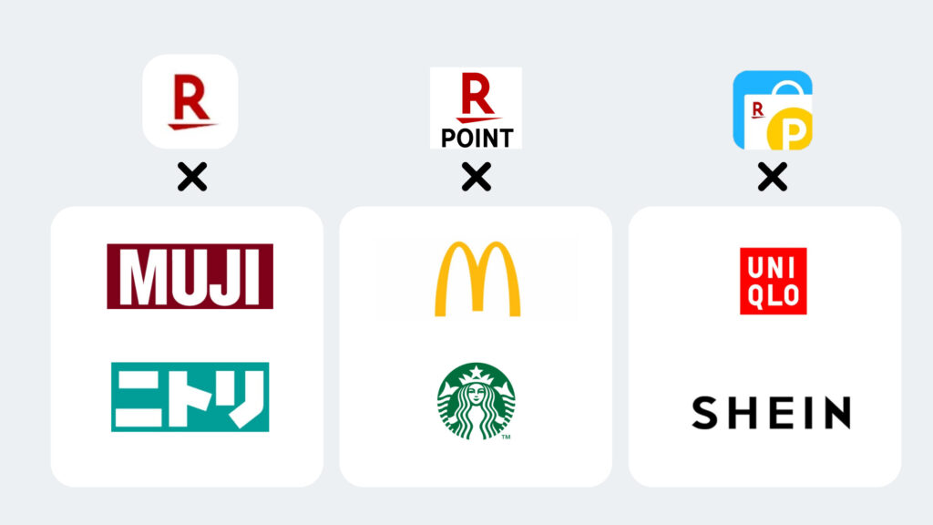 | Rakuten Fashion | +0.5倍 | 月1回以上の楽天Fashionアプリか5000円以上買い物 |