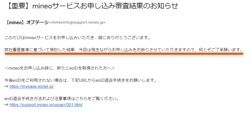 わたしはmineoに審査があることや、審査基準について知らなったので、審査落ちメールが来たときは驚きました。