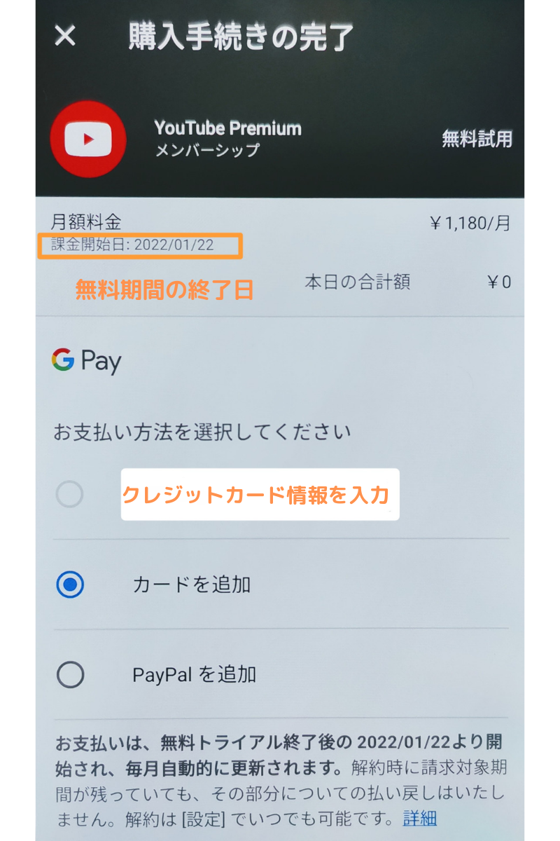 このとき、無料期間の終了日も表示されるので、無料で利用したい方は忘れずに確認しておきましょう。
