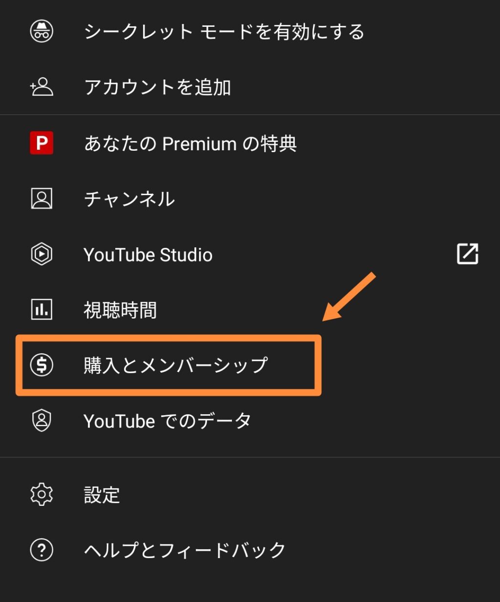 解約の方法は、まずYouTubeアプリを起動して、右上のアカウントアイコンをタップし、メニュー内の「購入とメンバーシップ」をタップします。