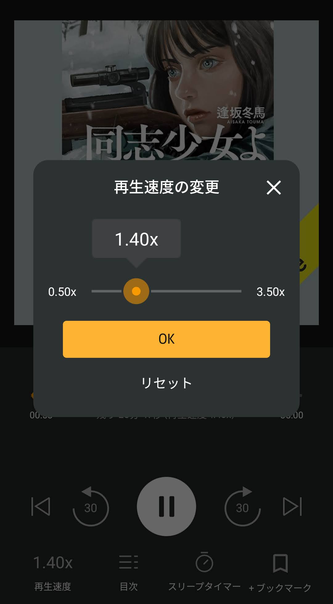 オーディブルは0.5~3.5倍で再生速度を調節できます。