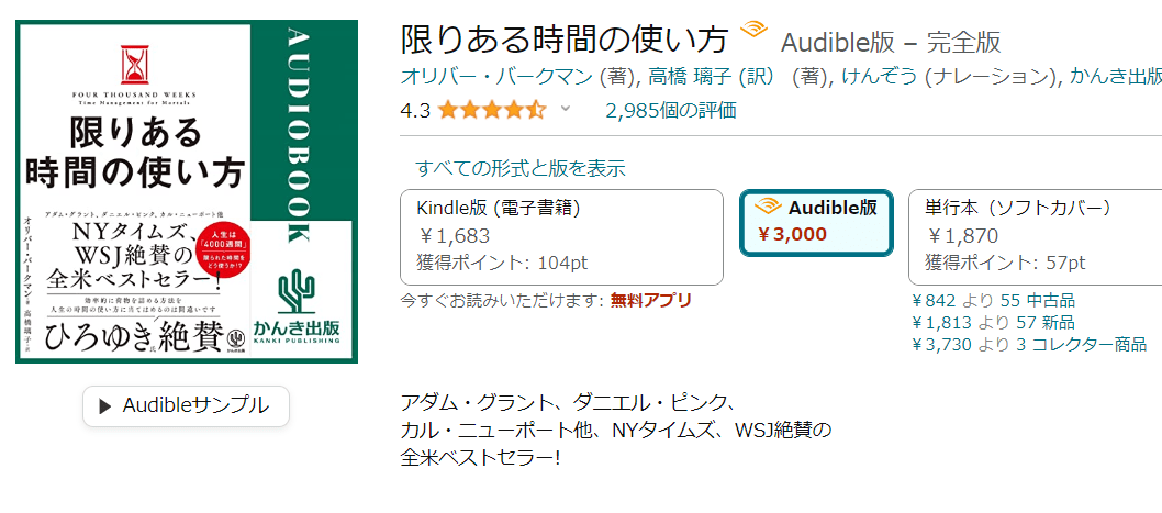 オーディブルでは、すべての本が無料で試し聴きができます。
