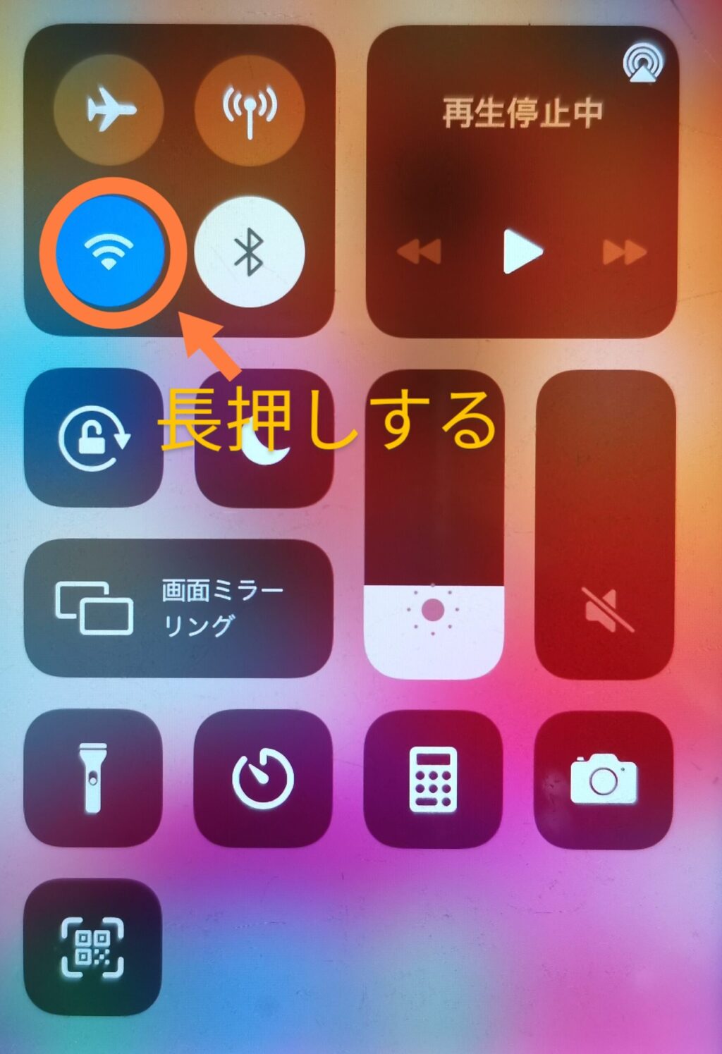 スマホの画面下からスワイプしてWiFiマークを長押しします。