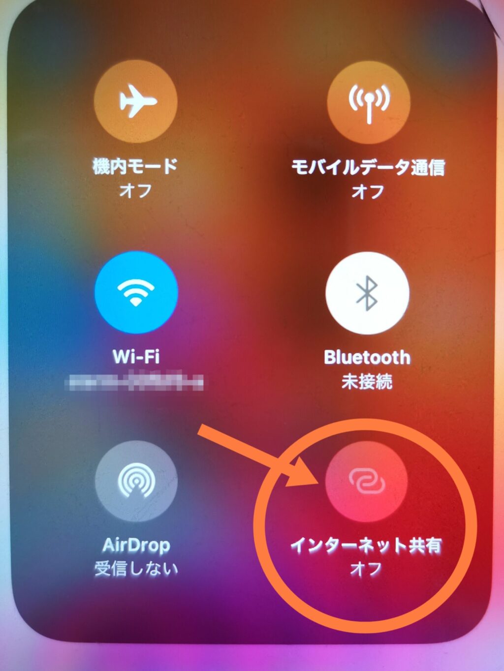(テザリングすると、画面左上のWIFIマークの横に共有マークがつきます)