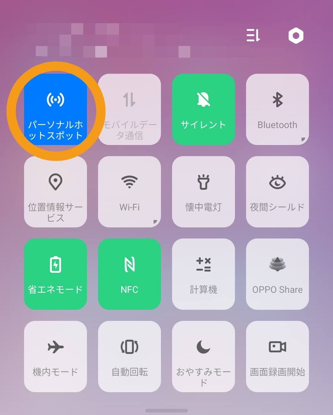 OPPOの場合は「パーソナルホットスポット」をタップします。
