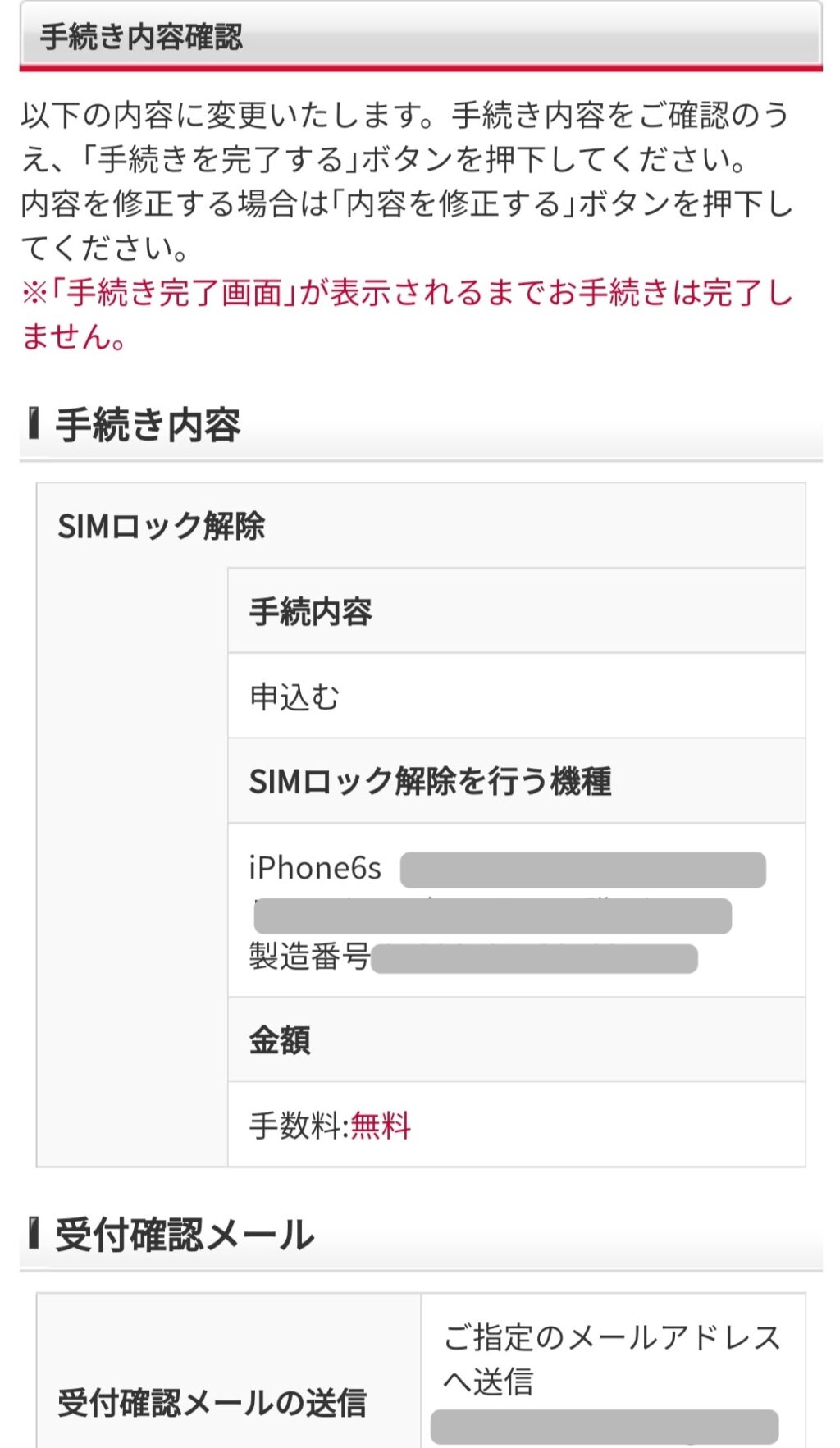 SIMロック解除を行う機種が表示されるので、合っているか確認し、申し込みをします。