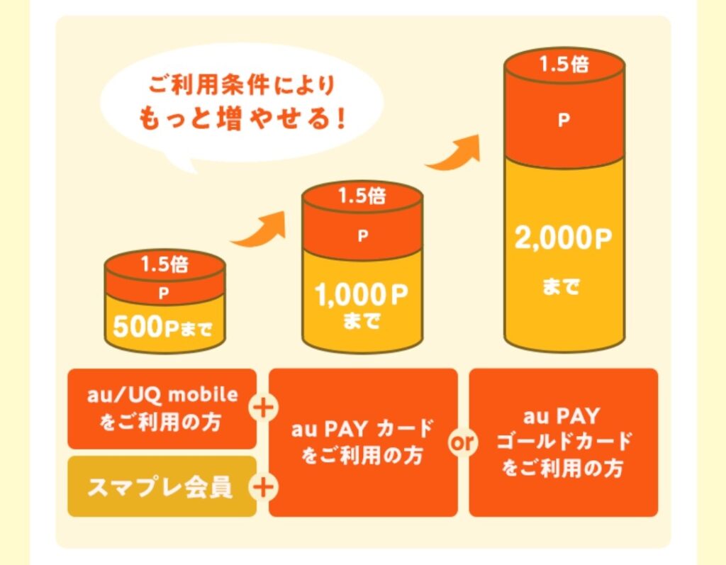 増量したポイントはauPAYマーケットで使うことができ、最大1,000Pまで交換可能です。