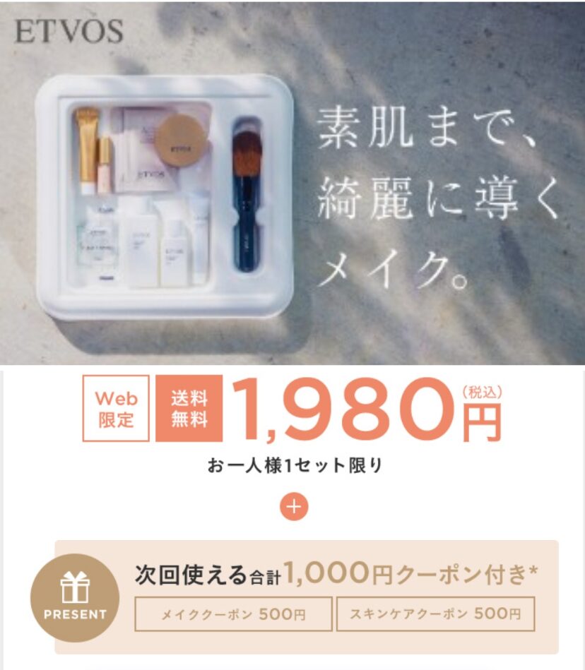 ETVOSのメイクとスキンケア両方お試しできるパーフェクトキットがおすすめ。