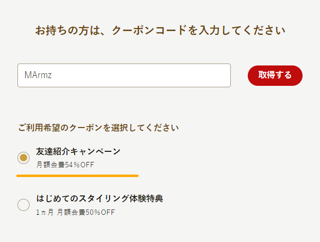紹介コード「MArmz」を入力すると初月会費55%OFFになります。