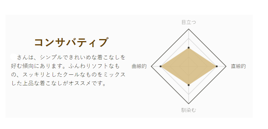 無料診断が終わると、ファッションスタイル結果が分かります。