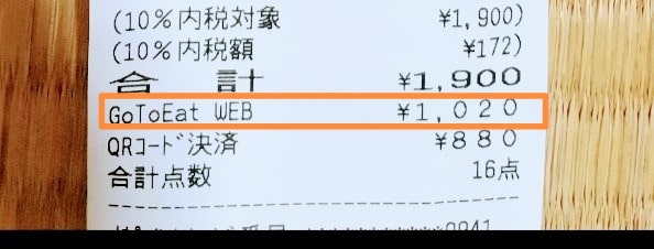 2人で行って1,900円のお会計でしたが、このときは1,020円分のPayPayグルメクーポン値引きが入り、880円になりました。