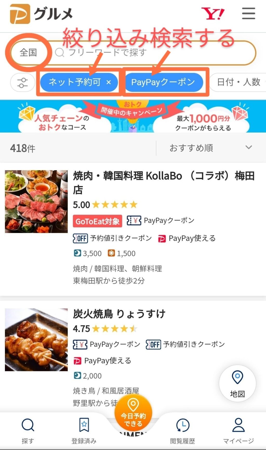 すぐに使えるPayPayポイントは支払い額が安くなるので、飲食店に行く前にPayPayグルメをチェックしてみるとよいですね。