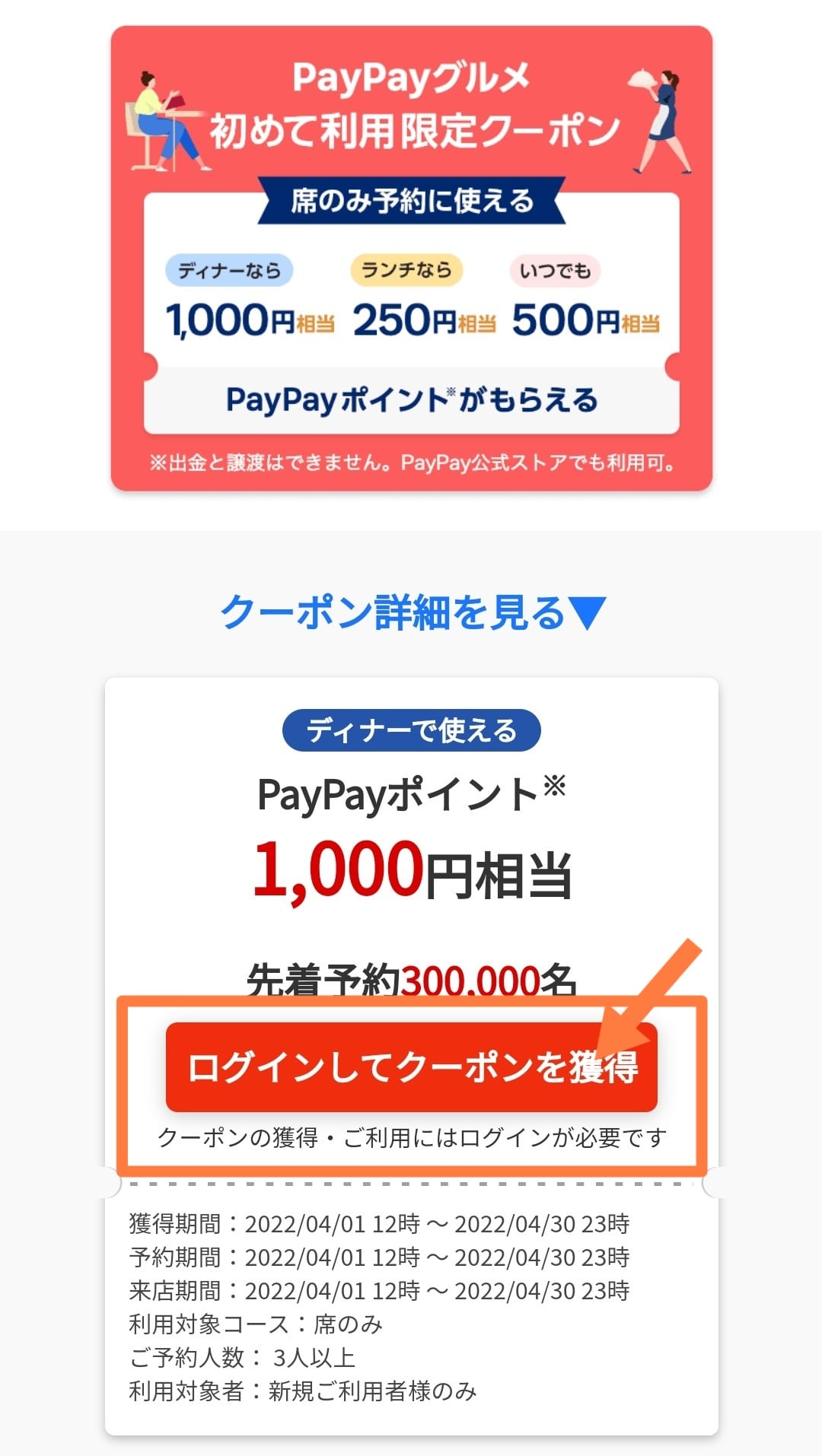 PayPayグルメから予約&来店すると、最大200円分のPayPayポイントがもらえます。