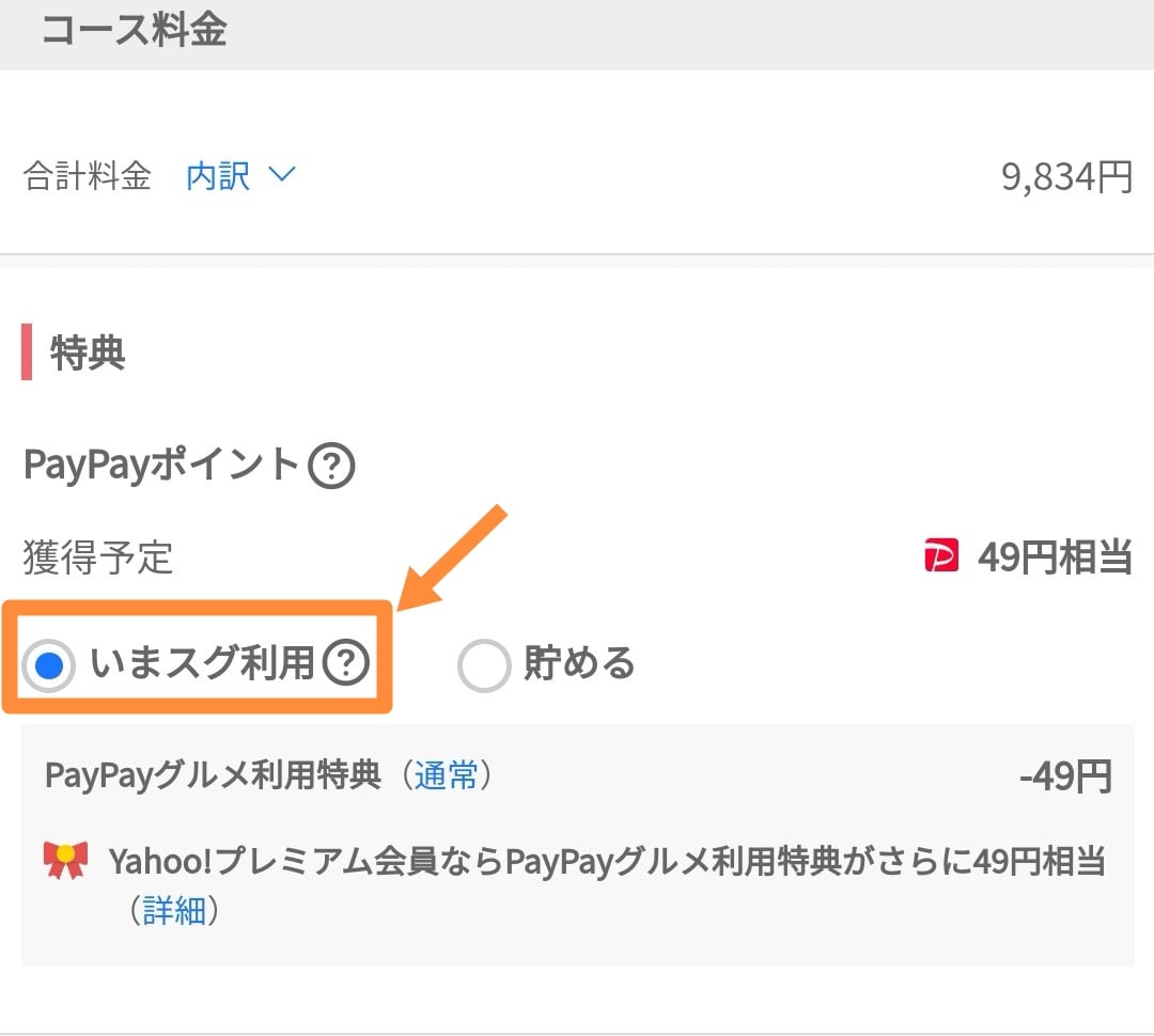 PayPayグルメの付与予定ポイントは、貯めずにすぐに使うこともできます。
