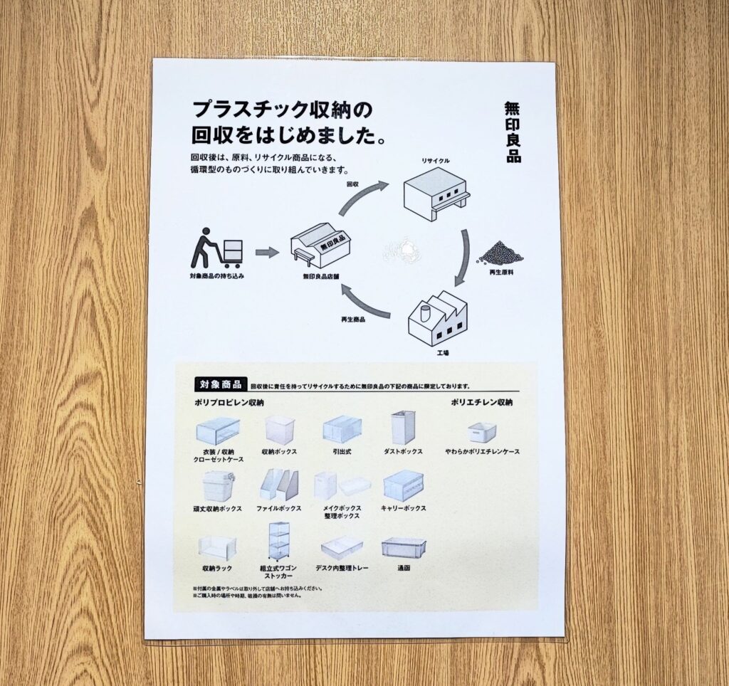 無印良品では一部対象アイテムを回収し、リサイクル活動に取り組んでいます。