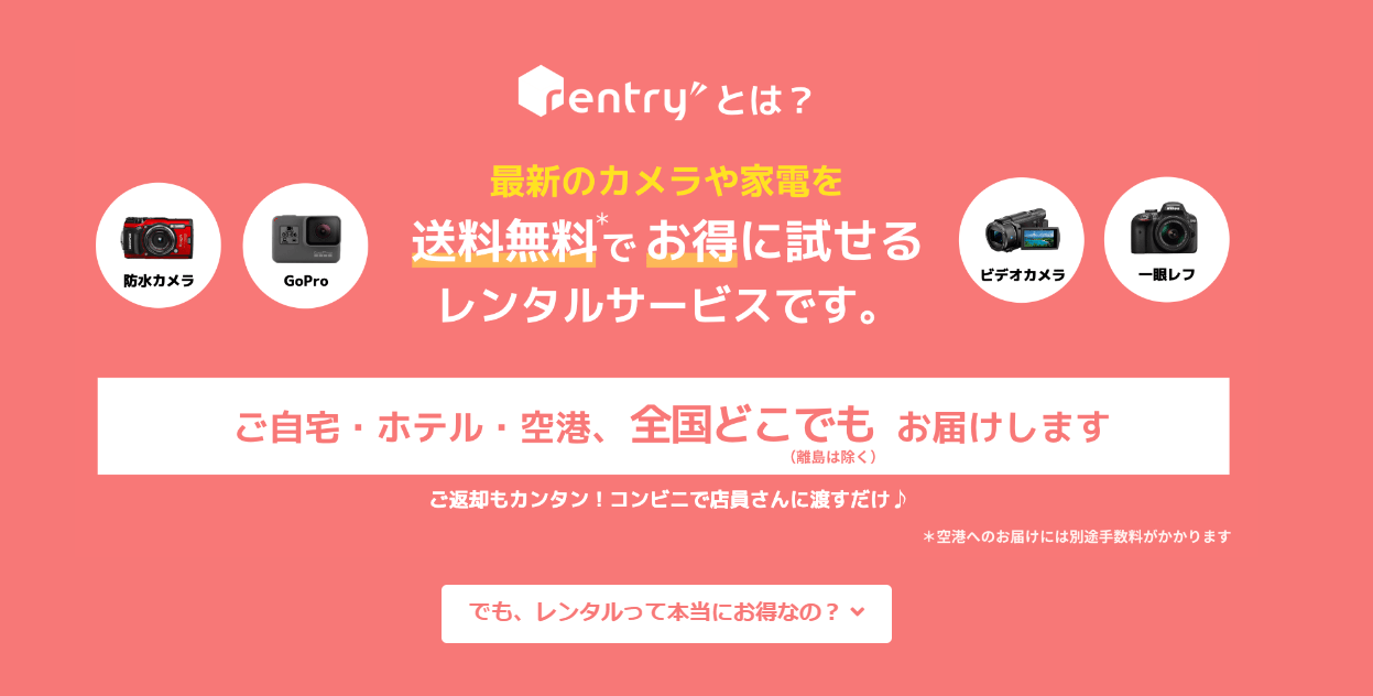 rentry(レントリー)は、最新カメラや家電をレンタルできるサービスです。