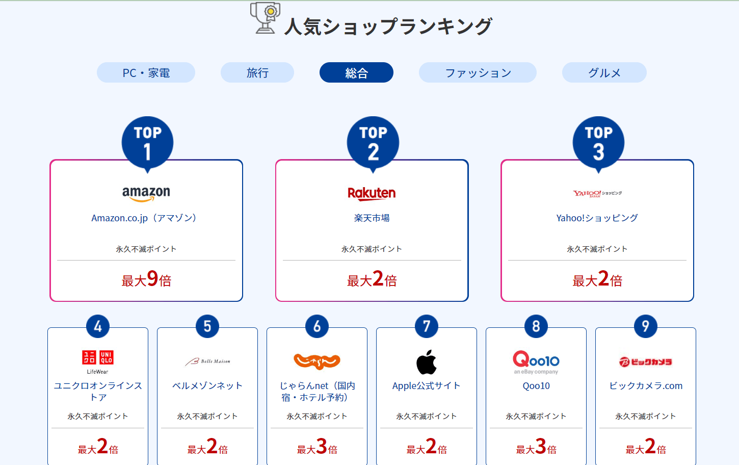 経由した各ショップのポイントも一緒に貯まるので、ポイントの2重取りが可能です。