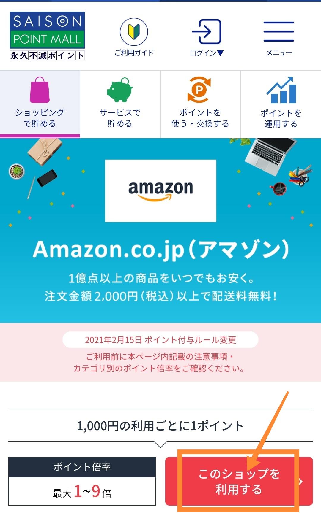 セゾンポイントモールを使ってAmazonで買い物すると、永久不滅ポイントが最大9倍貯まります