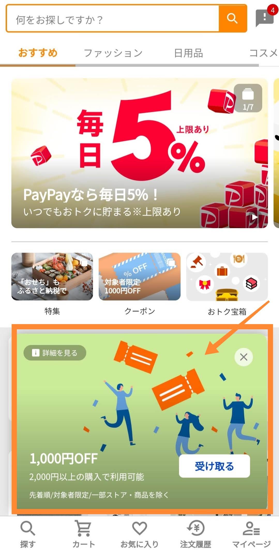 もらえたクーポンは、Yahoo!ショッピング内で利用できます。
