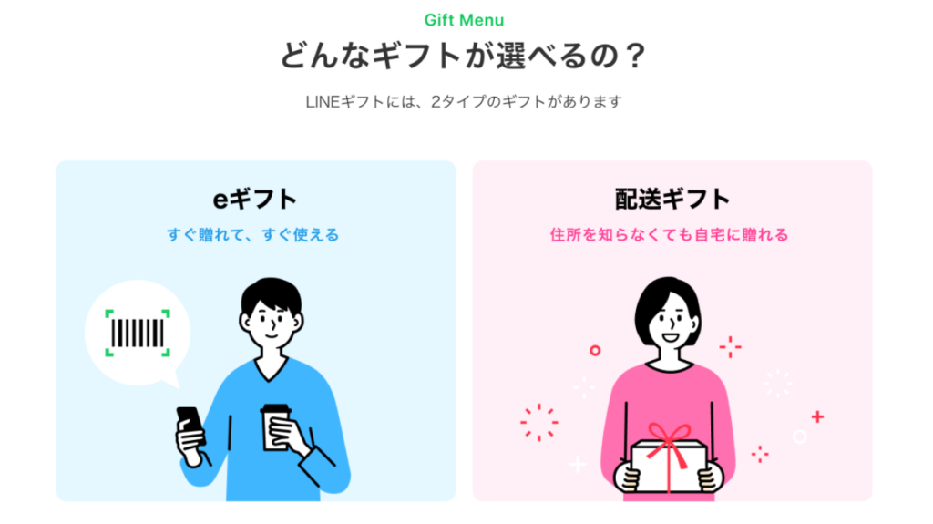 LINEギフトには「eギフト」と「配送ギフト」の2種類があり、どちらも相手の住所が分からなくて送ることができます。