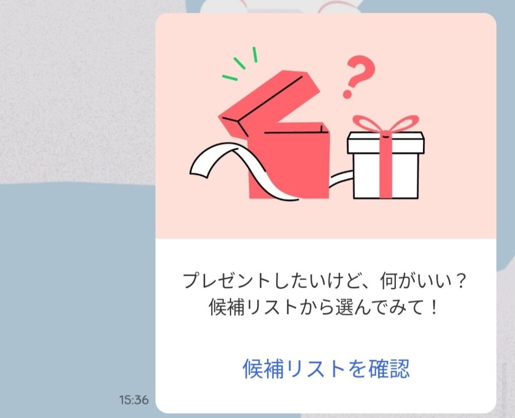 プレゼントの種類やギフト価格も設定して候補リストを送れます。